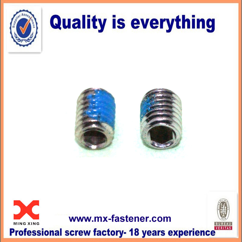 Mingxing Hardware Product Factory | Cone point tip piont set screws with nylok finished