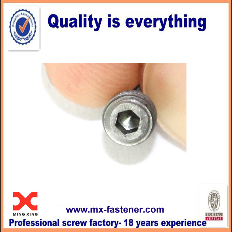 A set screw is a type of screw generally used to secure an object within or against another object. The most common examples are securing a pulley or gear to a shaft. Set screws are usually headless (also called blind), meaning that the screw is fully threaded and has no head projecting past the major diameter of the screw thread. A blind set screw (known in the UK as a grub screw, quite possibly from its figurative resemblance to a soil-dwelling grub) is almost always driven with an internal-wrenching drive, such as a hex socket (Allen), star (Torx), square socket (Robertson), or slot. The set screw passes through a threaded hole in the outer object and is tightened against the inner object to prevent it from moving relative to the outer object. It exerts compressional or clamping force through the bottom tip that projects through the hole.